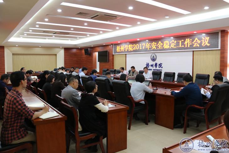 2月20日下午,学校在明理楼第一会议室召开2017年安全稳定工作会议,贯彻落实全国、全区高校安全稳定工作会议精神,部署我校2017年安全稳定工作。校领导唐耀华、杨奔、邱房贵及各职能部门主要负责人、二级学院院长、分管学生工作副书记参加会议。邱房贵主持会议。