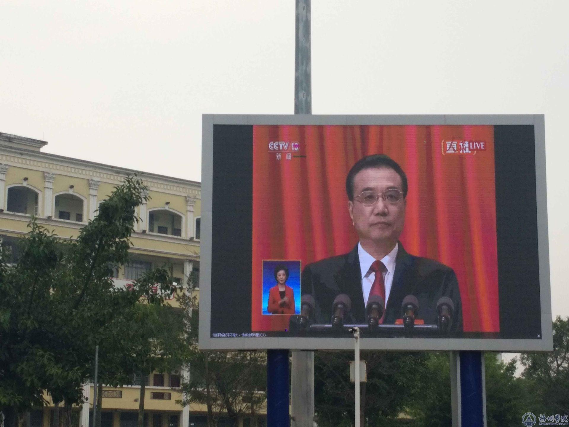 3月5日,电子屏幕直播全国人民代表大会召开实况——李克强作政府工作报告