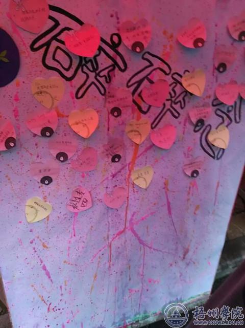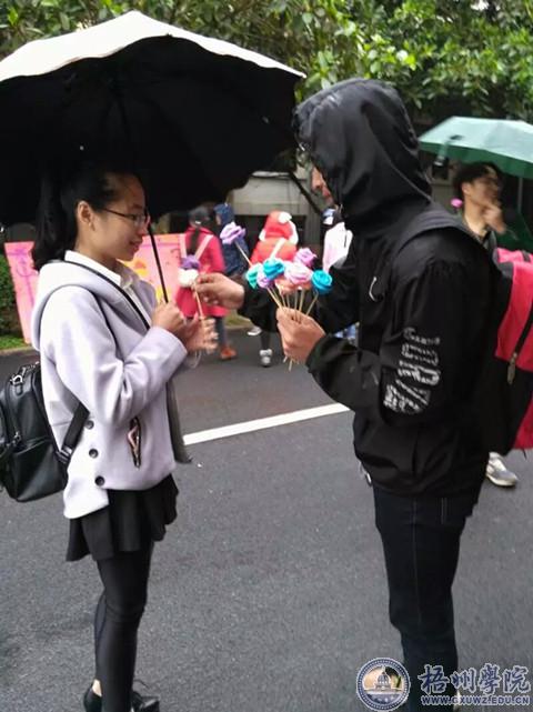 中午细雨蒙蒙,却丝毫不影响节日温暖的气氛。“遇见高马尾”活动中,男生们为经过摆点的每一个扎着高马尾的女生送上一朵玫瑰花,收到花的女生脸上都露出了幸福的笑容。“落霞与孤鹜齐飞的后一句是?”“秋水共长天一色!”女生们通过“诗词对接”游戏可以赢得一份小礼物,也展示了自己的诗词实力。“碎碎念”许愿墙上贴满了色彩斑斓的心愿贴,它们承载着女生各种各样的心愿以及美好的祝福。