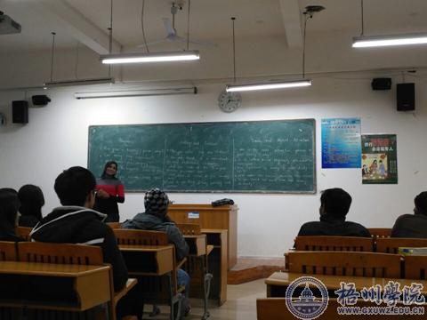 本学期开设了泰语角和英语角,泰语角由吴婷婷老师和贺碧云老师开设,英语角由Mike、拉梅什和孙达雅开设。时间从周一到周五晚上19:00到21:00,地点在明理楼中楼M203教室。外教们在外语角与同学们交流的内容也十分丰富,从他们国家的衣食住行到宗教信仰等文化方面的内容都有涉及,让同学们极大的开阔视野。