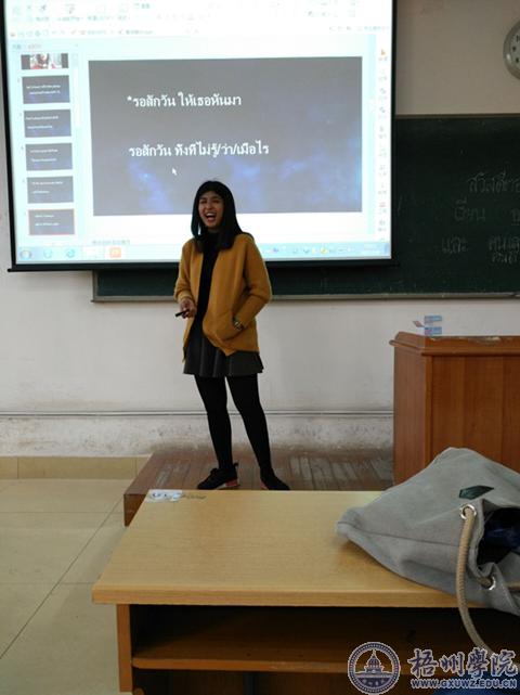 新学期伊始,国际交流学院外语角活动又正式啦。3月6日晚上的英语角外教拉梅什跟同学们讨论了“记忆中的学校生活”与“外国人不知道的中国的事情”,同学们积极参与讨论并展现了自己的口语水平。3月8日晚上,泰国外教吴婷婷老师与贺碧云老师则以“泰国歌曲”为主题,教同学们演唱泰语歌曲《亲爱的,你还幸福吗》。美妙的歌声在教室飘荡,气氛温馨又轻松。