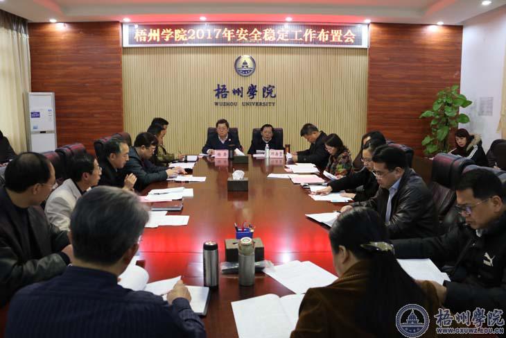 3月9日下午,学校在明理楼第二会议室召开2017年安全稳定工作布置会,贯彻落实学校今年安全稳定工作会议精神,进一步筑牢校园安全防线,扎实做好学校安全工作,确保学校的安全稳定和谐。校长杨奔、副校长邱房贵出席会议,学校安全稳定工作领导小组成员参加了会议。邱房贵主持会议。
