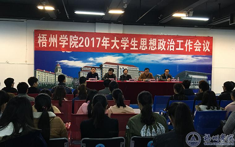 为深入贯彻全国高校思想政治工作会议精神,落实中共中央、国务院印发的《关于加强和改进新形势下高校思想政治工作的意见》,进一步加强和改进学校大学生思想政治工作,3月16日下午,梧州学院2017年大学生思想政治工作会议在大学生发展中心召开。副校长邱房贵,学生工作部(处)部(处)长、校团委书记陈远武,学生工作部及校团委有关领导出席会议,近200名学生干部代表等参加了本次会议。会议由陈远武主持。