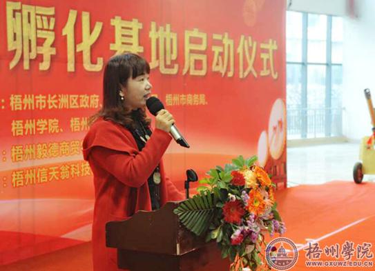 活动中,钟海明代表我校宝石与艺术学院对“毅德城创业孵化园启动仪式”的顺利举行发表了热情洋溢的致辞。钟海明表示,当前学生就业形势十分严峻,学校为了提高大学生的社会适应能力,积极为学生实习实训搭建平台,以达到拓宽就业渠道的目的。毅德城创业孵化园以多元的经营模式以及O2O线上线下结合的交易方式,不仅为我们全院师生甚至整个周边地区提供更便捷、更实惠的服务,而且为将来在此创业的大学生拓宽生意渠道,紧跟现代商业发展的时代潮流。这对我院大学生来说,无疑是一个来之不易的宝贵机会。最后,他鼓励我院大学生一定要珍惜机会,在毅德城创业孵化园提供的平台基础上,秉持桂商优良传统,学习企业家精神,立足当前,放眼未来。