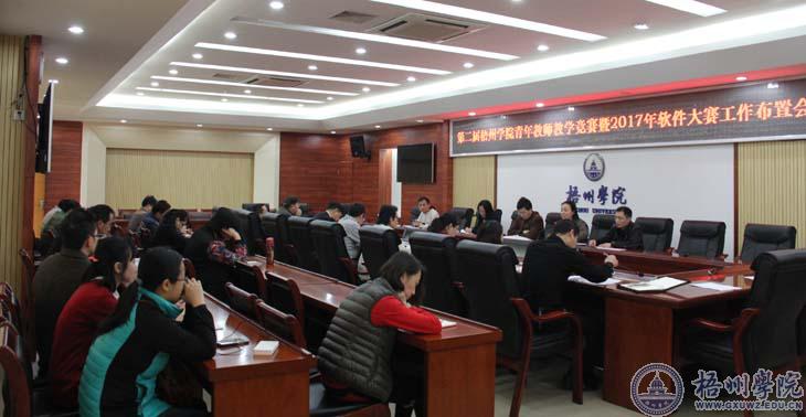 | 3月23日上午,学校在明理楼第一会议室召开第二届梧州学院青年教师教学竞赛暨2017年软件大赛工作布置会。分管教学副校长林基明主持会议,教务处、现代教育中心、工会有关负责人,二级学院分管教学副院长及工会主席、教研室主任,教学竞赛组委会办公室成员参加了会议。