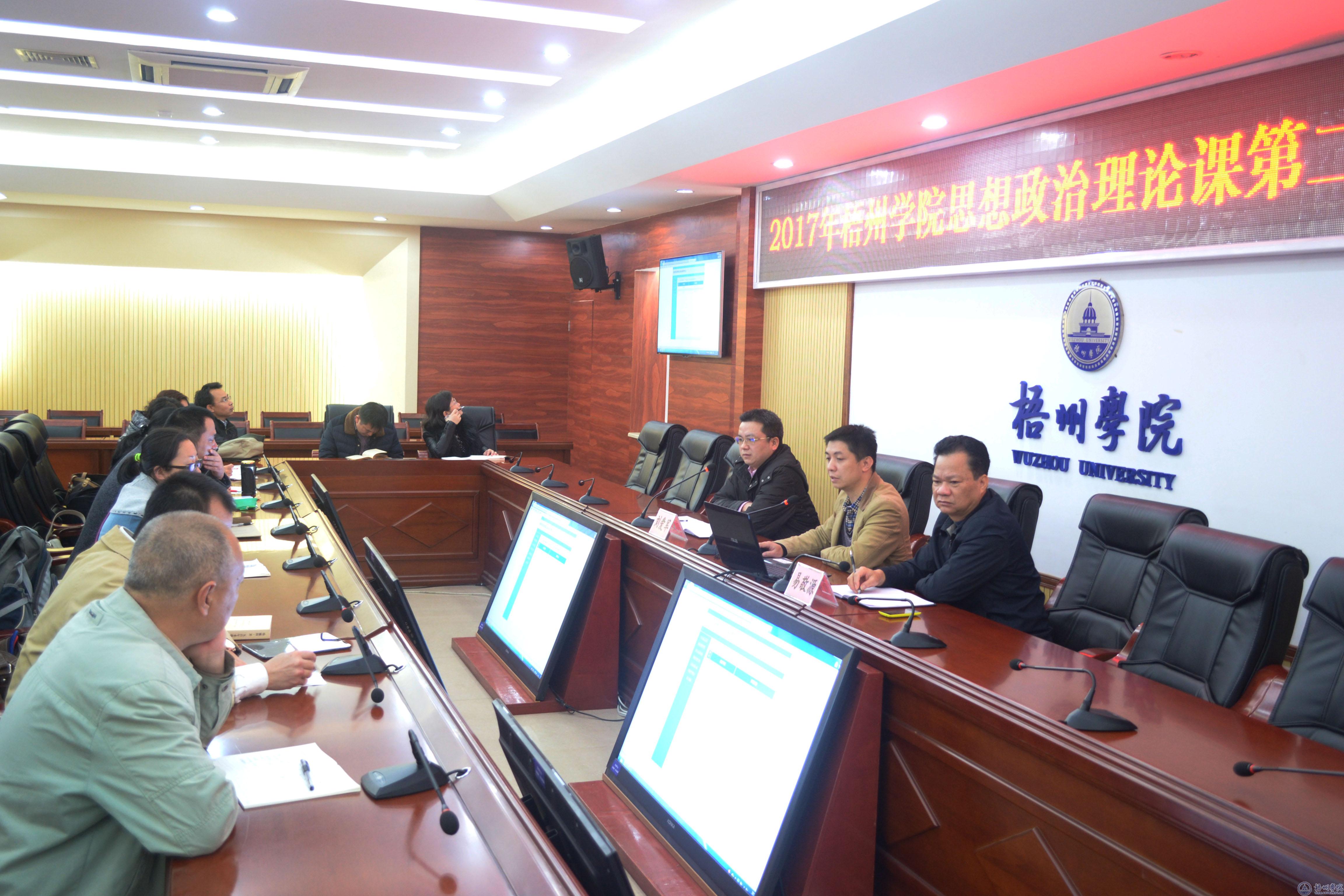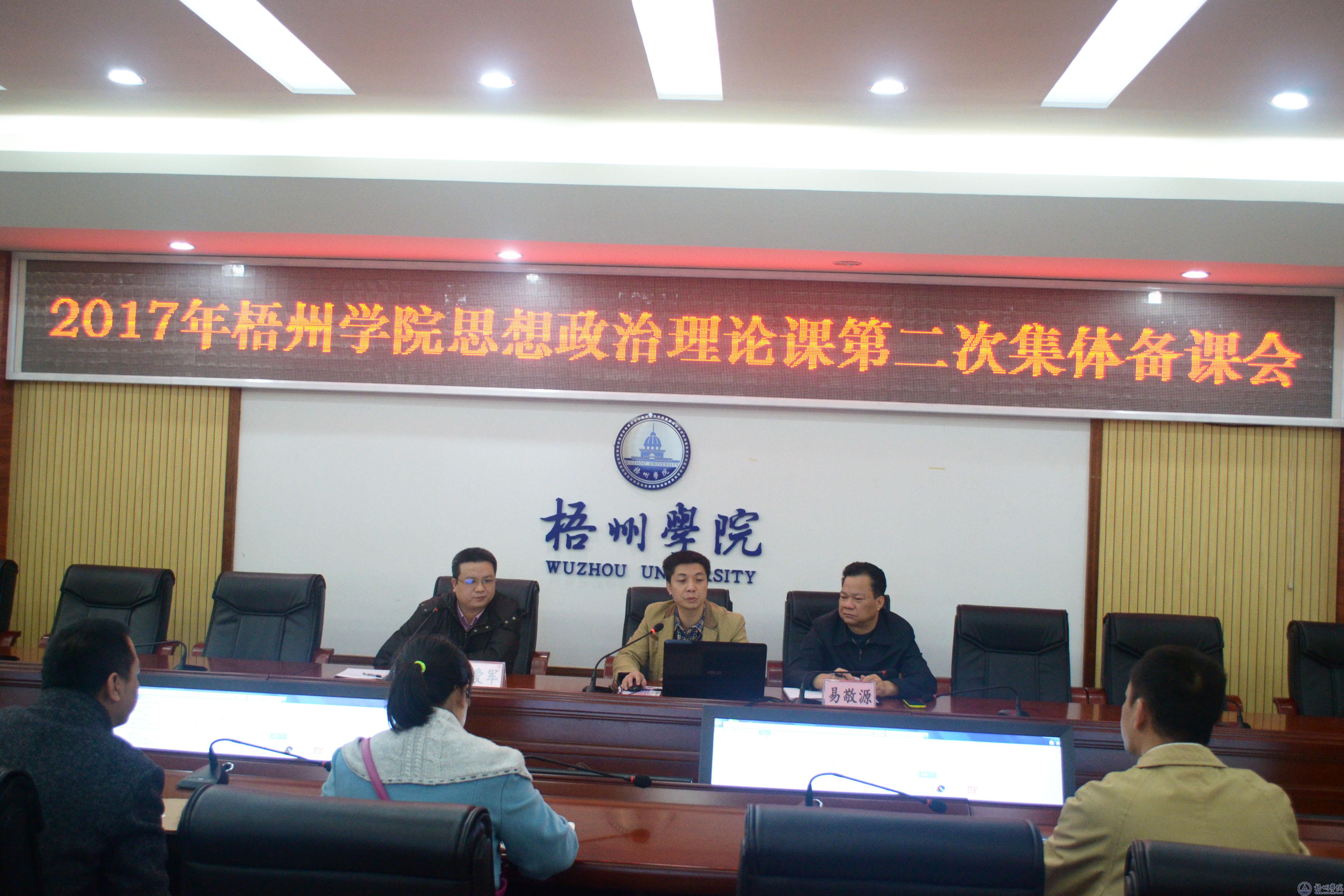 为让教师更加熟练掌握梧州学院思想政治理论课学教平台(以下简称:学教平台)的使用,进一步推动我校思想政治理论课教学改革,3月13日上午,学校社科部在明理楼八楼第一会议室召开梧州学院思想政治理论课第二次集体备课会。文法学院党委书记易敬源、社科部副主任刘爱军博士、平台研发负责人陈兴老师以及社科部全体专职教师参加会议,会议由刘爱军主持。