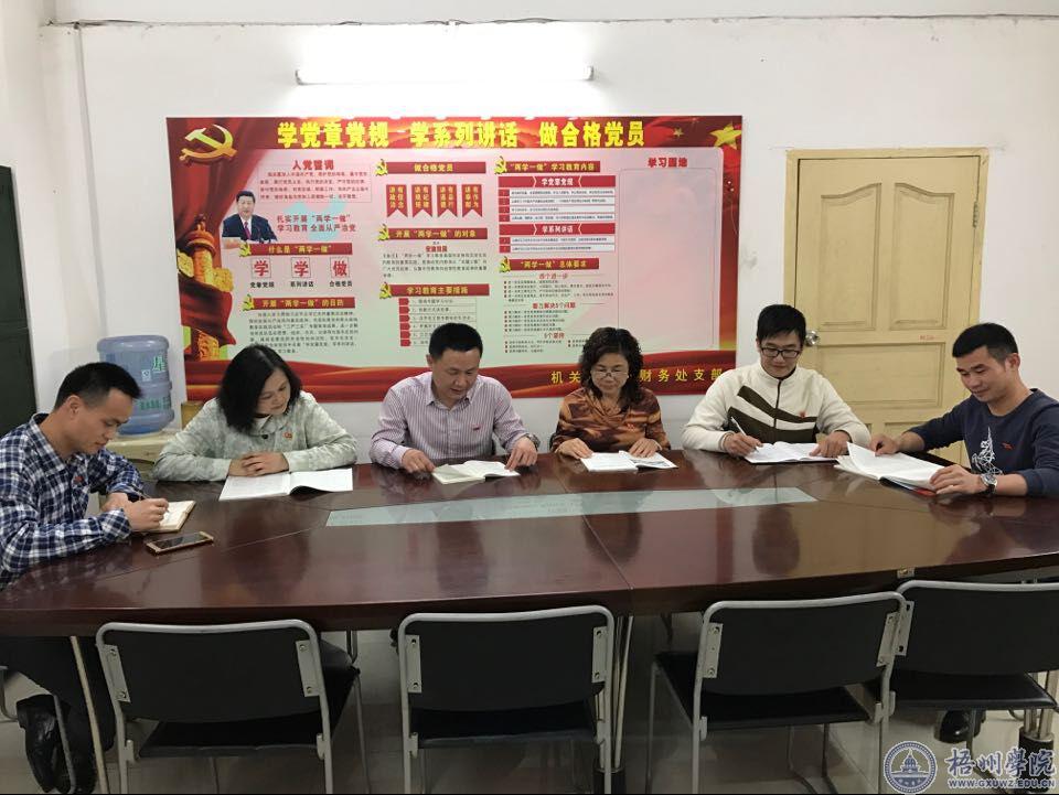2017年3月24日下午,机关财务处支部召开了“两学一做”学习教育专题组织生活会党员会议,共同学习了《关于新形势下党内政治生活的若干准则》和《中国共产党党内监督条例》。会议由支部书记覃雄彪同志主持。全体党员参加会议。