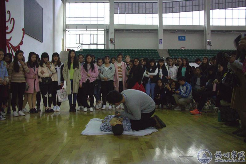 3月29日下午,由师范学院主办的“大学生常见身心疾病防治及心肺复苏知识讲座”在体育馆三楼举行。本次讲座由梧州市红十字会医院副主任医师叶琪、莫伟强和莫滨榕医生主讲,梧州市红十字会医院团委书记唐俊彦,我校全体体育专兼职教师及2016级全体同学参加了讲座,讲座由师范学院党委副书记韩小平主持。