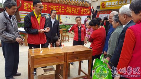 为落实开展“在职党员进社区集中为民服务月”活动,推动“两学一做”学习教育常态化制度化, 3月24日上午,国际交流学院教工党支部组织部分党员到莲花社区开展“壮族三月三·和谐在梧州”活动。