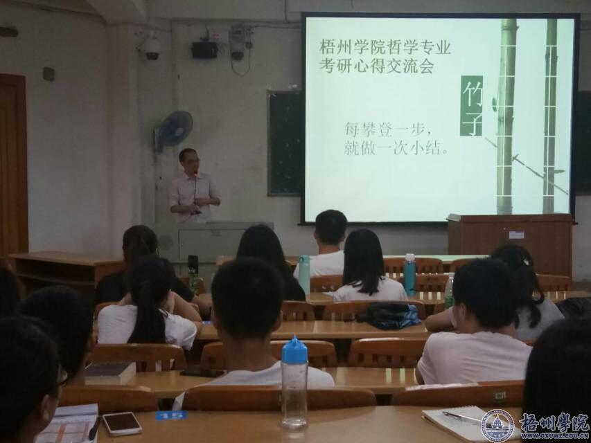 其他优秀考研生也就复试技巧等多方面问题与同学们交流了自己的考研感受。现场提问过程中,同学们踊跃举手提问,七位考研代表有针对性地回应了大家的问题。哲学专业教研室潘家猛博士就如何选择报考学校向同学们做了详细介绍。此次交流会为考研学生提供了一个交流的平台,会后,众多2014级哲学专业的考研学子纷纷向优秀考研生询问更多关于考研方面的信息。