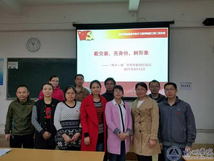 根据梧州学院《关于推行“党员活动日”制度的通知》精神,党员活动日需采用“3+x”(3个固定项目+自选项目)进行,4月11日下午,信息与电子工程学院教工第二党支部召开了支委会讨论决定活动内容和形式,并于12日下午在明理楼S204举行党员活动日,主要内容为: 党员缴纳4月份党费;学习“党员活动日”制度和《梧州学院贯彻落实<关于加强和改进新形势下高校思想政治工作的意见>的实施方案》等文件精神,并展开讨论;开展党员“戴党徽、亮身份、树形象”主题活动。