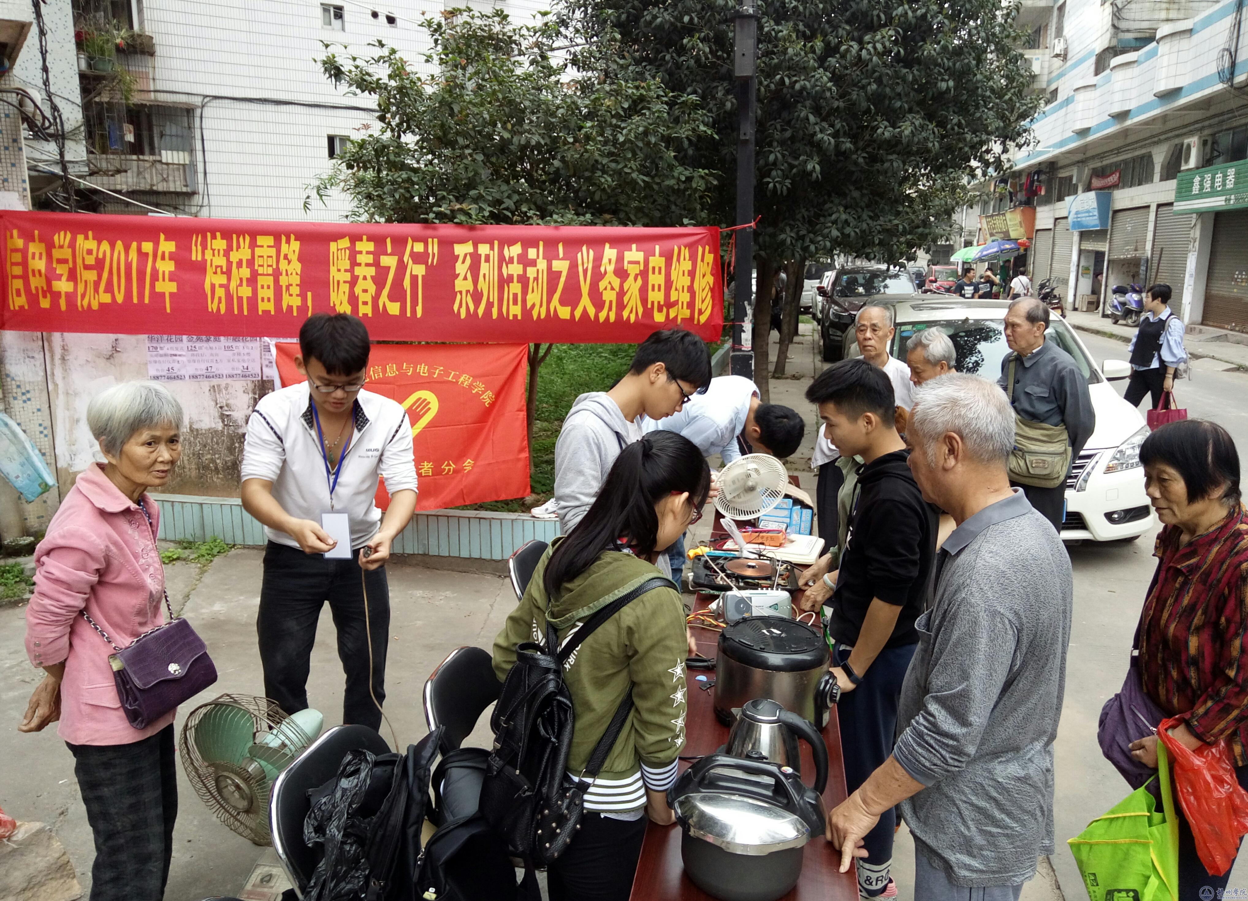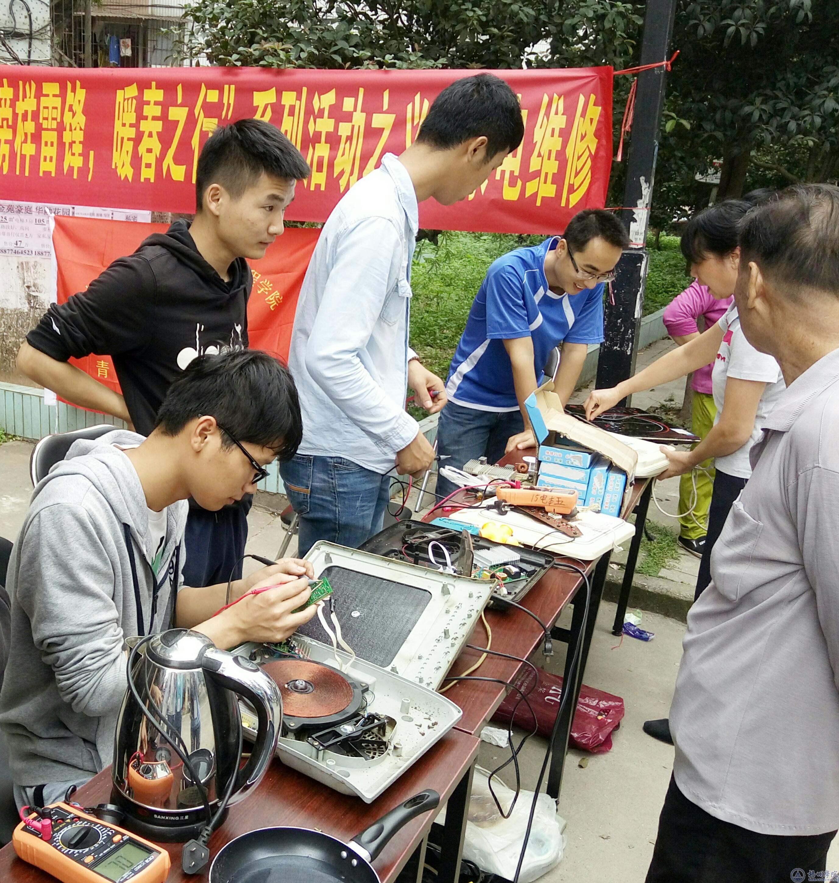 雷锋精神,在于无私奉献。为加强对雷锋精神的深层诠释。信电学院青年志愿者分会携手电子爱好者协会及易班工作站在富民社区内进行义务家电维修活动,解决居民家里电器故障带来的困扰。