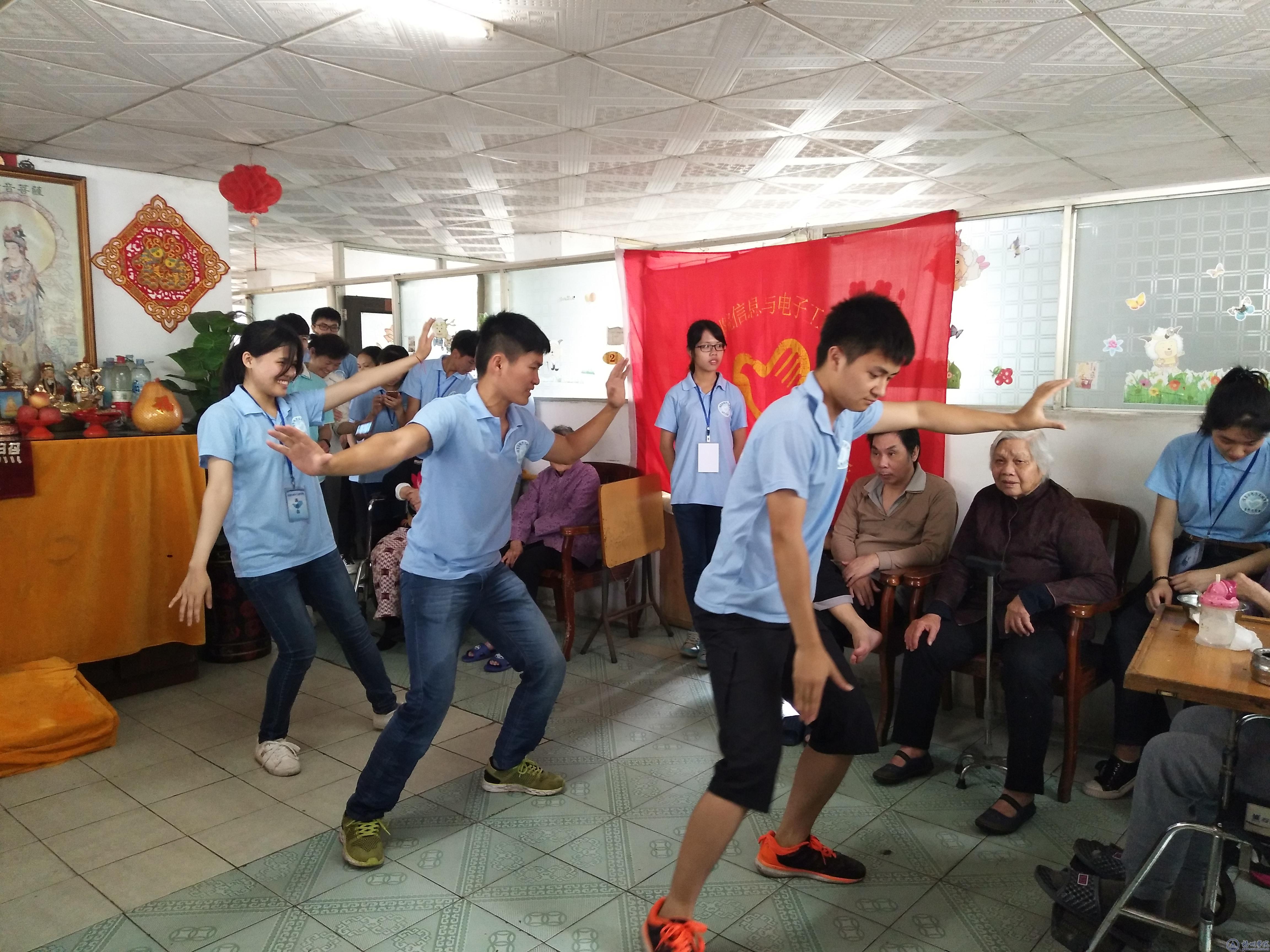 本次活动与往常去敬老院不同的是,除了给老人们打扫卫生、陪老人们聊天外,志愿者们还给老人们带去了精彩的表演,主要节目有由16级应用物理班陈德林、沈家昭等志愿者带去的《24式太极》,16级软件中升本班陆南梅领衔的《长城销魂》舞蹈表演等。在看表演的同时,志愿者还给老人们送上了水果和小蛋糕。最后,志愿者们还给老人们送上千纸鹤为老人们祈福。