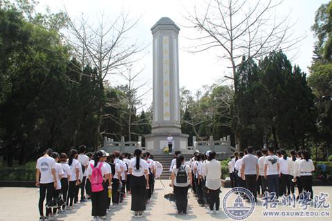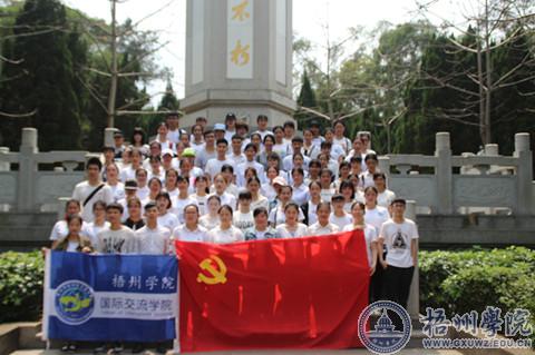 4月7日中午,国际交流学院团委、国际交流学院党建和管理服务中心以及学院各班级志愿者在梧州市河滨公园进行了清明节扫墓活动。扫墓全体成员步行前往河滨公园。在烈士墓碑前,全体成员默哀两分钟。班级志愿者代表发言,向革命烈士表达深切敬意。发言结束后,全体成员有序献花。