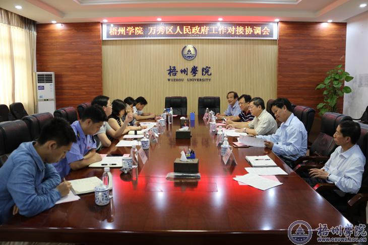 5月2日下午,梧州市万秀区副书记、区长高洁凤,区委常委、常务副区长郑兆武一行7人到校对协助我校北校区建设的相关工作进行对接并座谈。