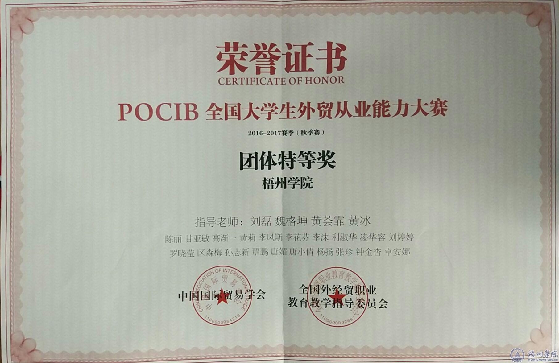 我校经管学院学生在POCIB全国大学生外贸从业能力大赛中获特等奖