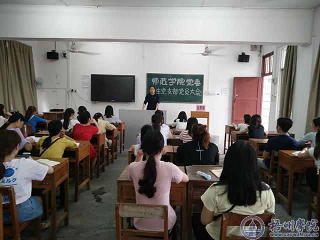 5月10日下午,师范学院学生党支部大会在师范学院B栋201教室召开。大会选举产生师范学院学生党支部委员会委员。大会由莫伍珠老师主持。