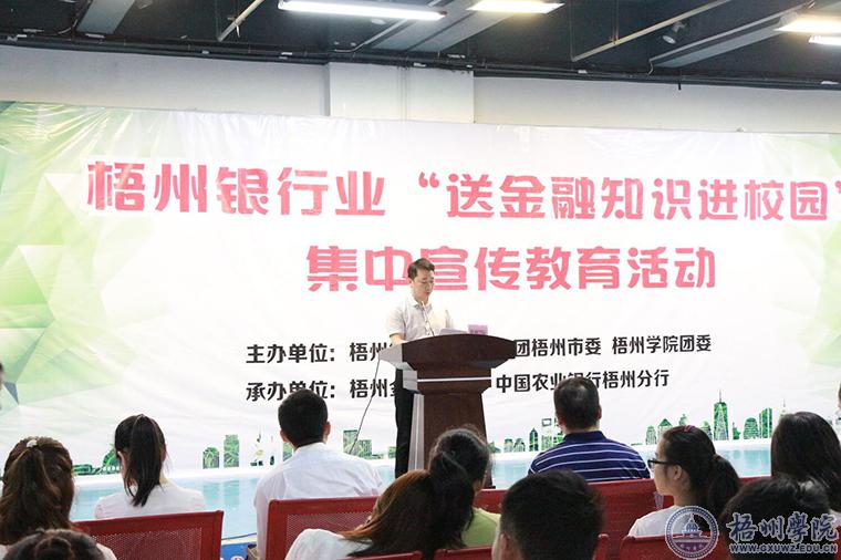 近日,“信青春,守未来”送金融知识进校园活动在我校大学生综合发展中心举行。梧州银监分局、团市委、校团委、农行梧州分行等多家梧州金融机构团委负责人,我校150名学生参加了本次活动。
