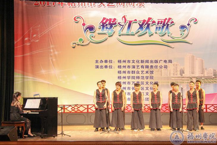 5月12日晚,我校师范学院在梧州市艺术剧院举办了一场别开生面的晚会,61名师范学院2015级音乐学专业的学生同台演绎了14个节目,向200多名师生听众汇报了两年来的教学成果。