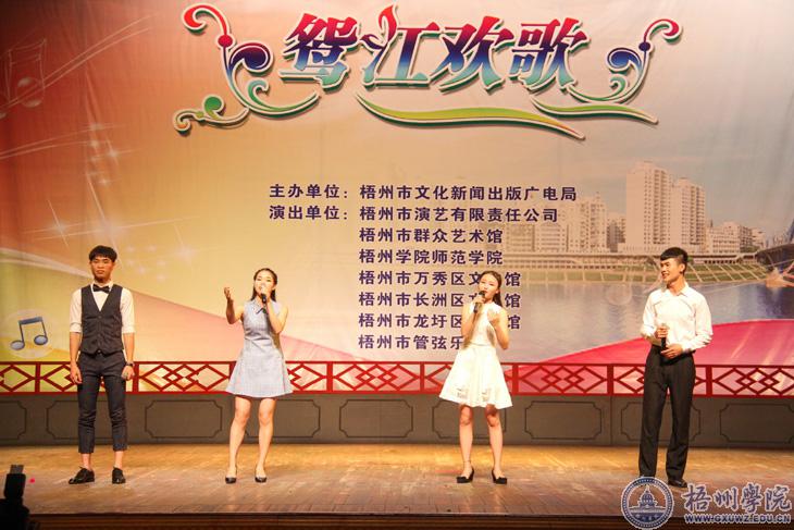我校师范学院音乐学教师陈洁表示,今年学校将参与四场“鸳江欢歌”文艺周周演晚会,主要采取声乐专场、钢琴专场、歌舞专场等表演方式。这次晚会是今年的首场演出,目的在于展示应用型人才培养的成果,锻炼学生舞台表演能力,为文化梧州作出高校的一点贡献。
