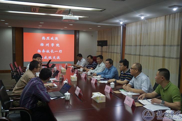 在江苏理工学院,该校党委书记王建华会见了杨奔校长一行。王建华从学校发展思路、建设规划、人才培养、学科建设、科学研究、产学研合作等方面简要介绍了江苏理工学院的有关情况。该校信息中心主任潘瑜详细介绍了本校信息化校园建设情况。杨奔对江苏理工学院的热情周到接待表示感谢。他表示,两校同属地方新建本科院校,都面临着如何加快转型发展问题,江苏理工学院在围绕地方经济发展,明确办学点位,凝聚师生共识,加快转型发展,培育办学特色,推进校园信息化建化等方面工作力度大,措施有力,效果明显,值梧州学院学习借鉴。座谈会后,杨奔一行参观了该校工程实训中心、信息中心。