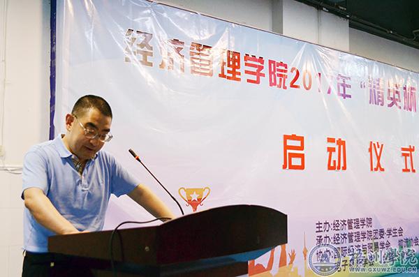 杨西春院长在致辞中指出此次技能大赛的目的在于进一步加强经管学院的学风建设和提升教学质量,把“精英杯”大赛作为应用技术型人才培养的练兵场,不断提升学生的专业素养和创新创业能力。杨西春院长对此次大赛也提出了三点建议:一是希望通过专业大赛,能达到以赛促教、以赛促学、以赛促业的目的,推动教学教育的改革,加强创新创业建设,进一步强化学生专业知识技能。二是希望同学们通过比赛,提高创新创业能力,专业知识技能及团队协作意识,全面提升自身的综合素质。三是此次比赛,需要突出特色亮点,及时巩固宣传,展示我院办业成果的平台。