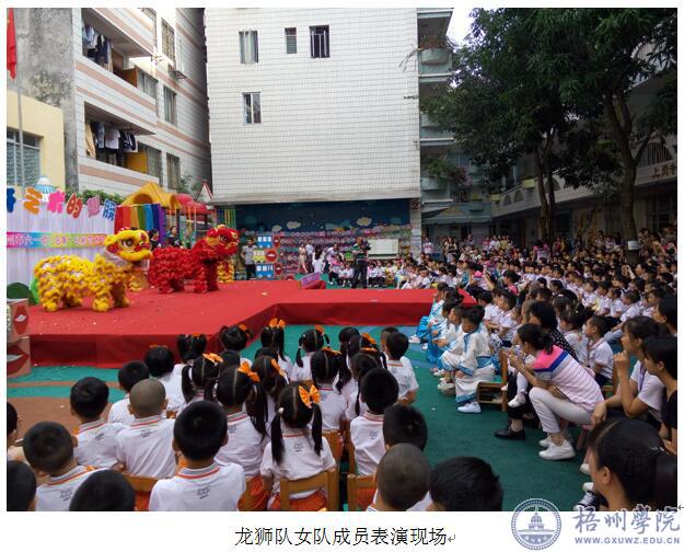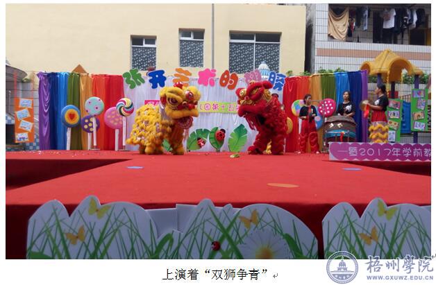 为保护、传承优秀传统舞狮文化,进一步推广“萌狮行动”公益活动,5月17日上午,经济管理学院龙狮队在梧州市六一幼儿园开展公益演出活动,给六一幼儿园第十五届艺术节增添了一份喜庆,为小朋友们带来了精彩的舞狮表演,同时也是龙狮队女队员首次亮相演出。