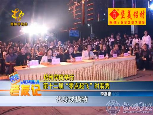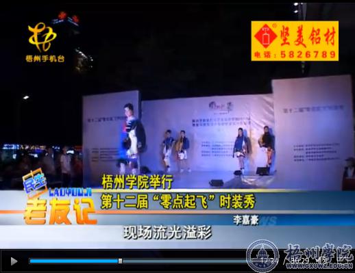 2017年4月17日,梧州电视台以《梧州学院举行第十二届“零点起飞”时装秀》为题,报道了我校宝石与艺术设计学院举办的“零点起飞”时装秀活动。