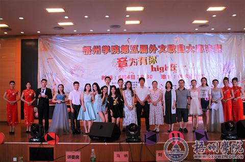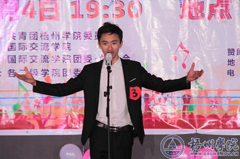 6月4日晚,由共青团梧州学院委员会、国际交流学院共同主办的“音为有你,High在一起”第五届外文歌曲大赛决赛在学术报告厅举行。