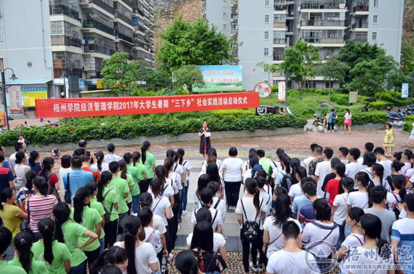 7月7日下午,经济管理学院2017年暑期“三下乡”社会实践活动启动仪式在梧州市富安社区举行,揭开了经济管理学院大学生暑期三下乡的序幕。
