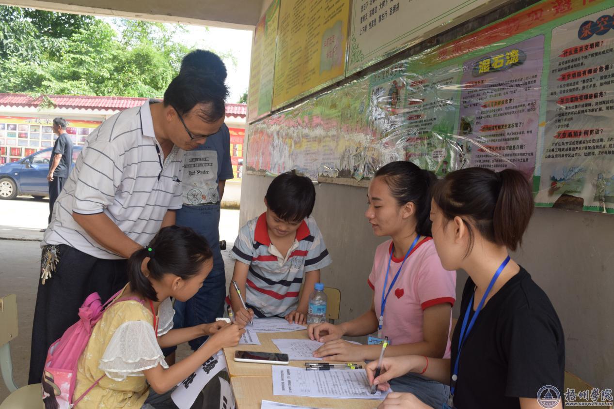 2017年7月9日上午九点整,梧州学院2017年大学生志愿者暑期“三下乡”社会实践活动启动仪式在体育馆一楼隆重举行。仪式结束后,各服务团队相继展开工作。