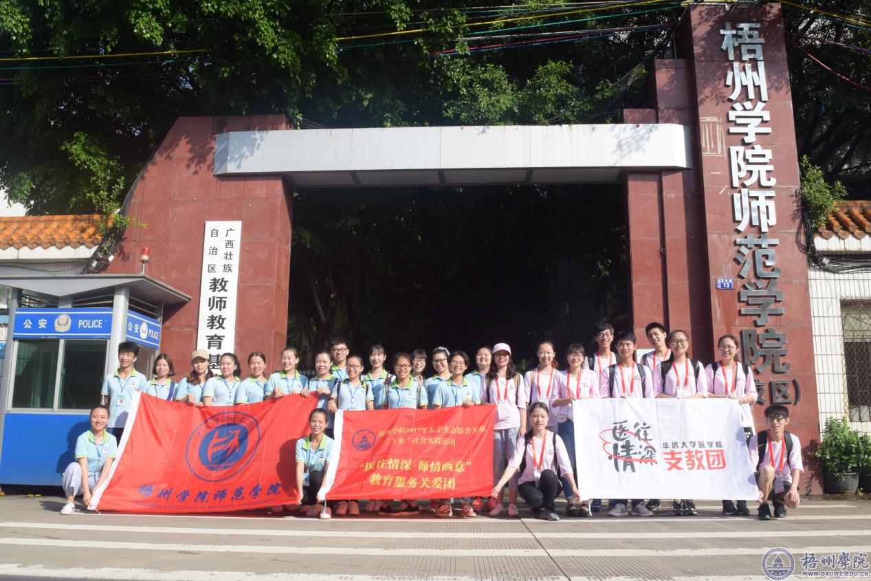 7月10日上午八点半,2017年暑期“三下乡”——“医往情深•师情话意”教育关爱服务团由师范学院团委书记莫伍珠带队从师范学院出发,赴梧州市长洲区倒水镇开展为期一周的支教活动。此次教育关爱服务团实践活动由师范学院、华侨大学生物学院携手梧州市长洲区教育局、团委共同开展。