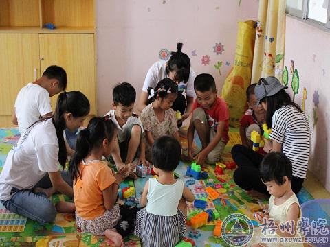 为深入了解农村留守儿童现状,并表达大众对这一群体的关爱,7月10日上午,国际交流学院“七彩阳光”服务团的志愿者们来到了荔浦县杜莫镇的寨村儿童家园,举行了关爱留守儿童活动。 志愿者们对寨村儿童家园中的儿童活动室进行简单的清扫之后,便与留守儿童们一起在活动室里交流、玩耍、做游戏。大家在欢声笑语中度过了一个特别的上午。通过一个上午的接触,志愿者们体验到了孩子们纯真与可爱的一面,也感受到了留守儿童们需要更多的关注与关爱,并领悟到了“陪伴”在他们的成长过程中起着不可或缺的作用。