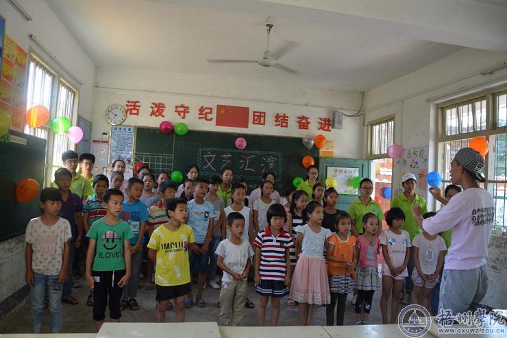 7月15日,是机化学院“播洒爱心阳光,情系留守儿童”服务团在蒙山县汉豪乡白竹小学进行“三下乡”活动的第七天,也是最后一天。志愿者以文艺汇演的形式展示六天里对留守儿童的教学情况。