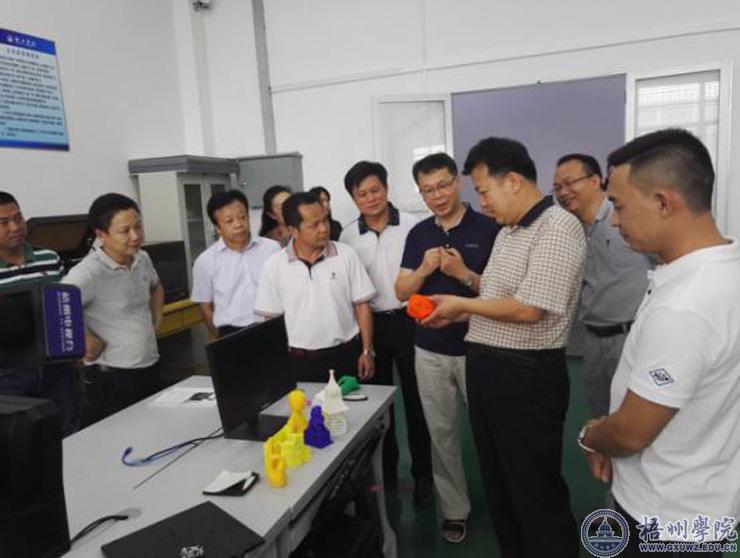 调研小组先后参观了基地的学生实训场所模具研发中心、3D打印研究所、药物提取实验室、林产化工实训室和校企合作企业梧州市鸿源机器设备有限公司,广西安壹化工检测有限公司,樺源水处理有限公司,寄生茶有限公司等企业相关情况。