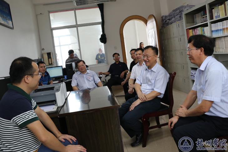 9月7日上午,在教师节来临之际,梧州市委书记黄俊华,市委常委、宣传部部长、副市长黄振饶到我校开展教师节慰问活动。黄俊华书记代表市委、市政府在第33个教师节到来之际,向我校全体教师致以节日的慰问和热烈的祝贺,并看望教师代表陆科达、吴军,并与他们进行交谈,了解他们的工作和生活情况。学校党委书记唐平秋、校长杨奔陪同慰问。