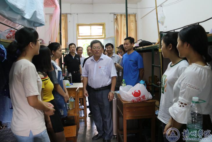 为做好2017级新生的接待工作,加强对贫困新生的了解和关怀,9月18日-19日期间,在家学校领导唐平秋、杨奔、陈爱民、林基明、邱房贵分别率队到新生宿舍开展慰问活动,为家庭经济贫困新生代表送上慰问金。