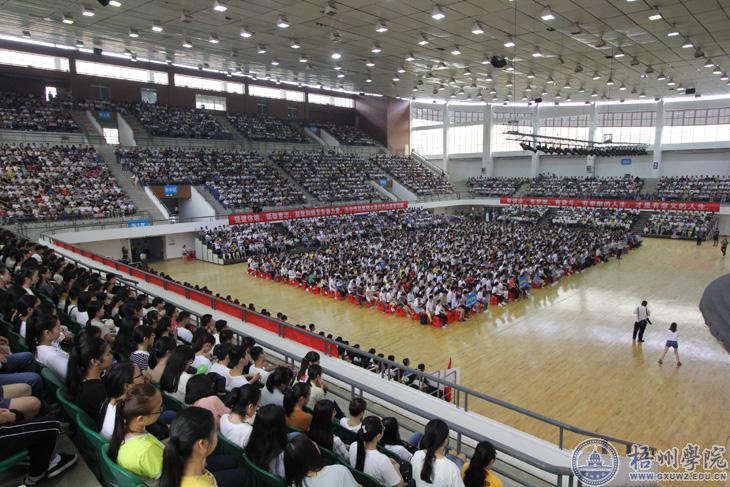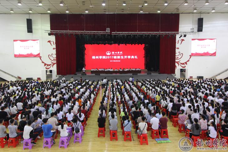 9月20日上午,我校2017级新生开学典礼在北校区体育馆三楼主会场举行。学校领导唐平秋、杨奔、陈爱民、玉振明、邱房贵以及校属各部门和各二级学院主要领导、新生辅导员,与来自全国28个省、市自治区的将近4500名新生及家长代表一起共同见证了新生们梦圆梧院的难忘时刻。开学典礼由学校副校长邱房贵主持。