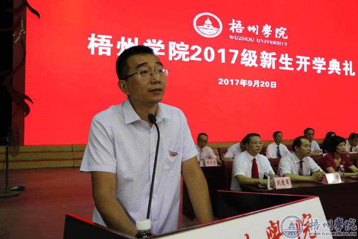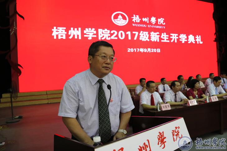 校长杨奔以“遇见梧院,遇见最美的你”为题作了开学典礼致辞。他说,遇见是一种缘分,是一份信任,更是一种幸福,为了我们今天的遇见,梧州学院已经在这里守候了112年。