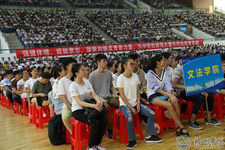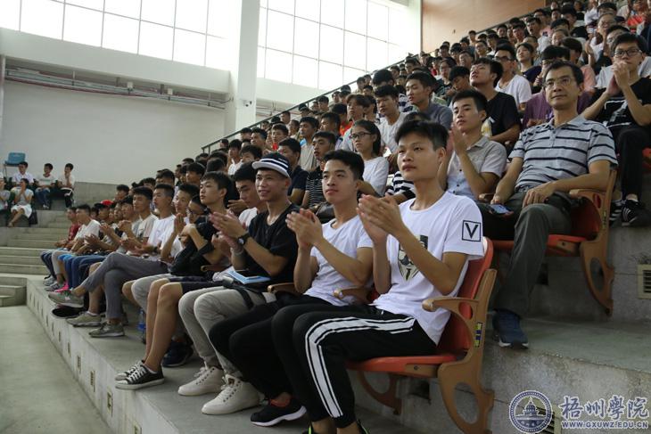 杨奔校长说道:来到梧院,你们会遇到广西高校海拔最高的图书馆,遇见广西高校最好的网球场,会遇见实验室里自由争论和严谨求证,遇见运动场上的挥汗如雨和各种社团的精彩缤纷……这些都会成为你们人生新的起点,新的追求,新的希望。