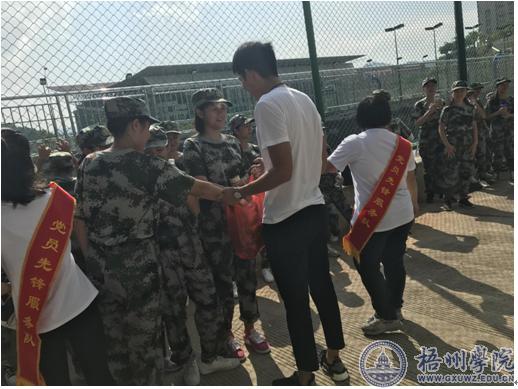为进一步了解新生军训情况,帮助新生尽快的适应大学的学习生活环境,9月24日早上,经济管理学院大学生党建管理服务中心全体成员到军训场地进行慰问活动,给新生们送去温暖。