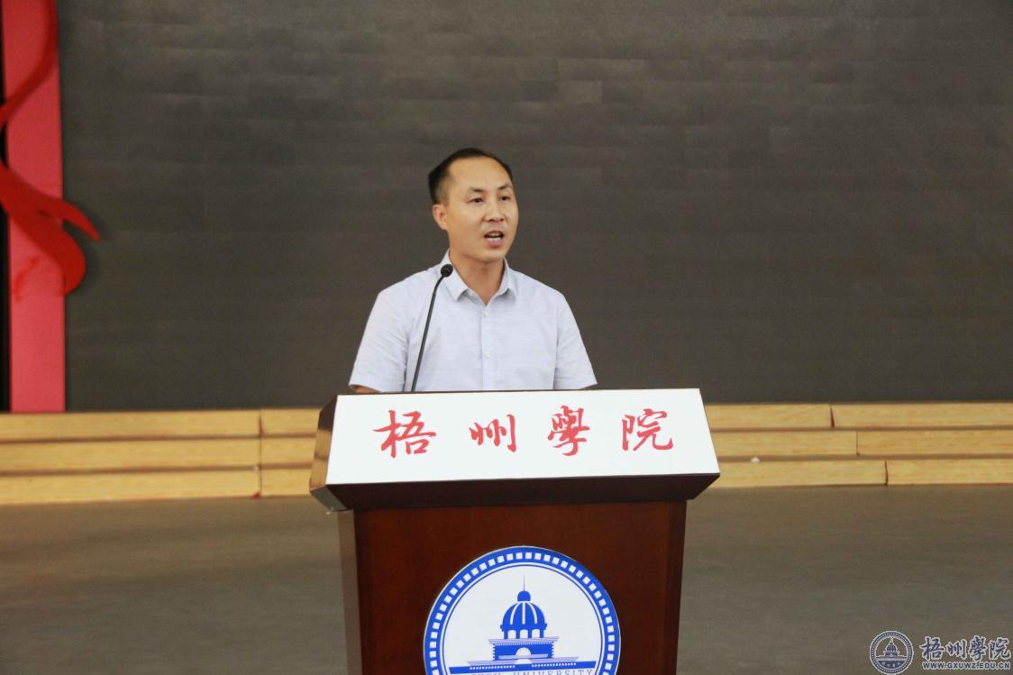 接着,我院教师代表陆科达老师就学习、生活等方面和新同学分享了自己的心得体会,他认为大学生的第一要务是学习,同学们要尽快适应新的环境,尽快找到合适自己的学习方法,尽快学会勇敢的面对挫折。