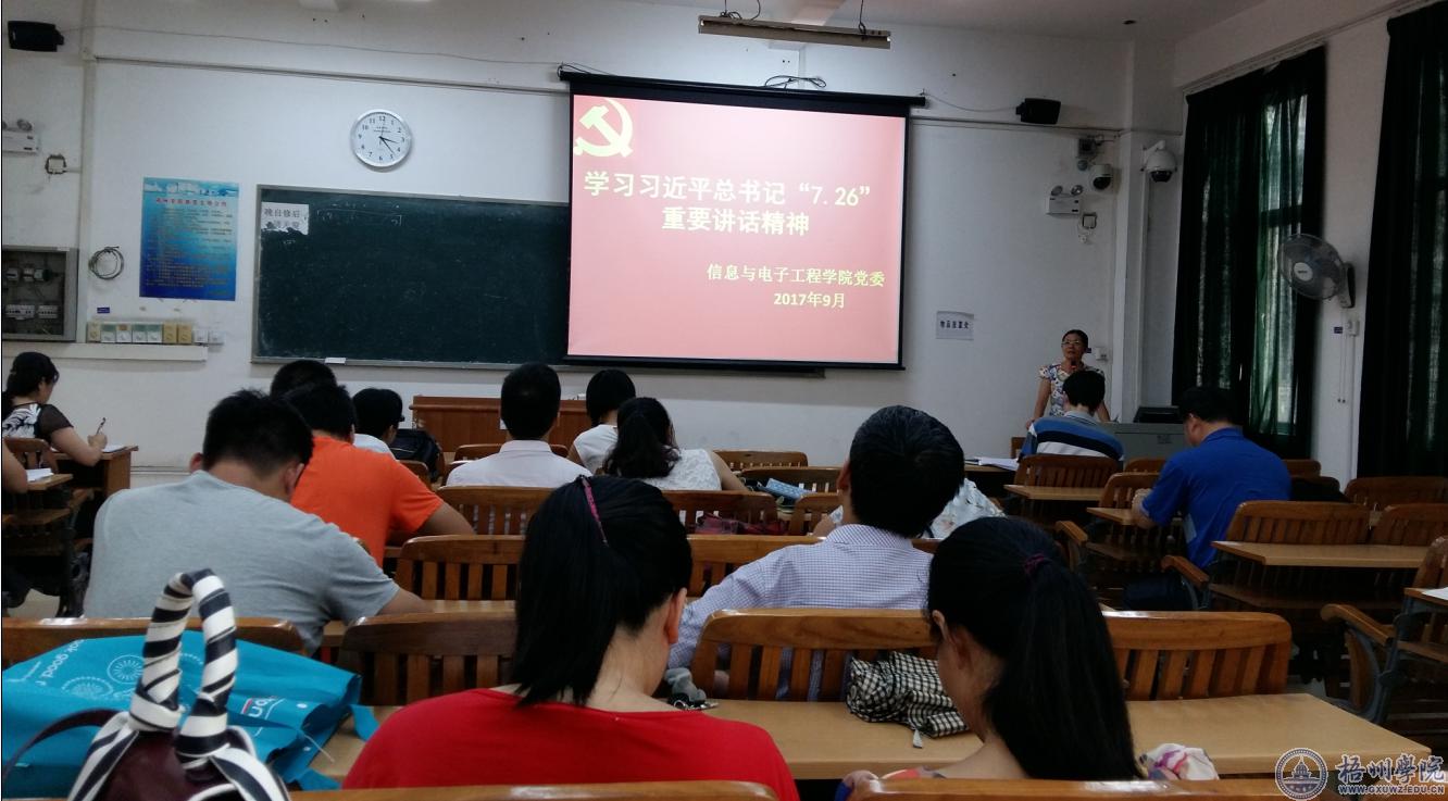 9月22日下午四点,信息与电子工程学院党委在南楼204教室,组织教职工党员学习习近平总书记“7.26”重要讲话精神,并召开组织生活工作布置会。会议由信电学院党委副书记吴燕端主持。