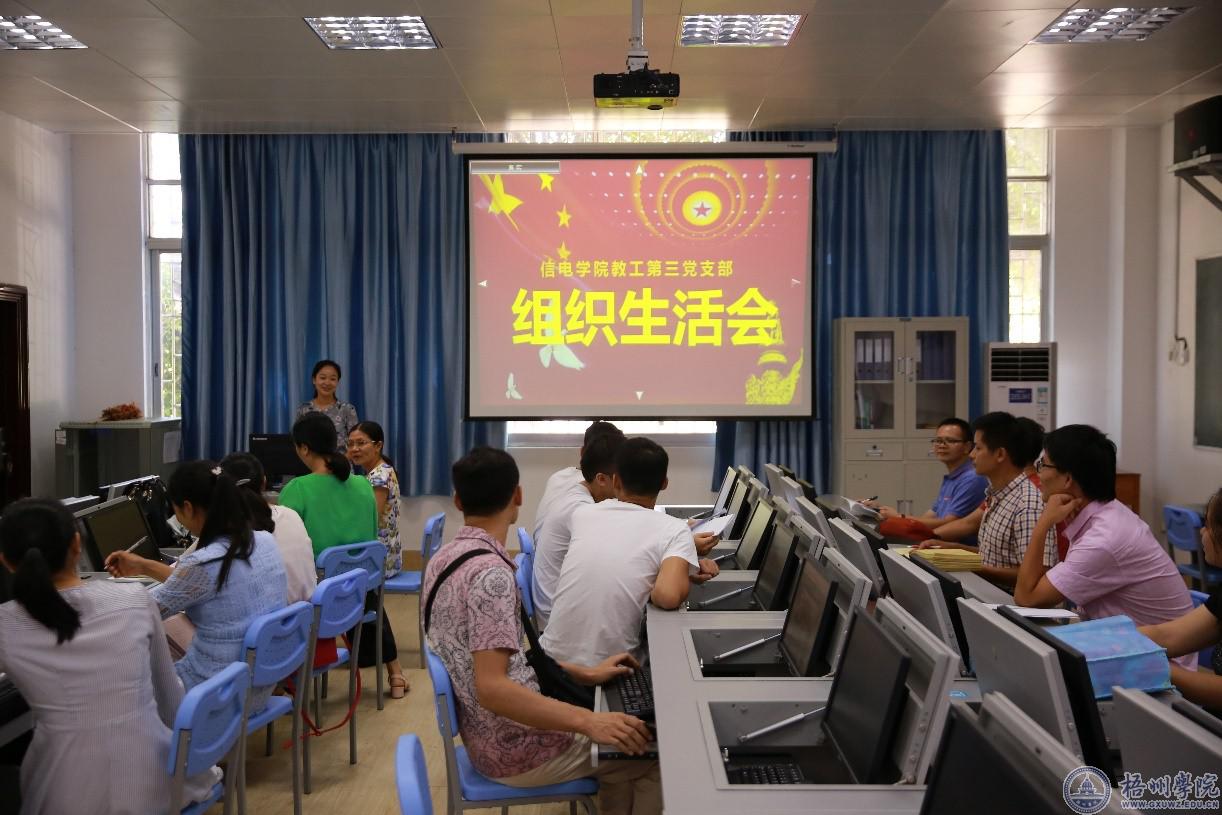 9月27日下午,根据自治区党委组织部《关于严格规范党支部组织生活的指导意见》的通知(桂组通字〔2016〕141号)文件精神和梧州市委组织部、梧州学院党委的要求,信电学院教工第3党支部组织召开组织生活会。