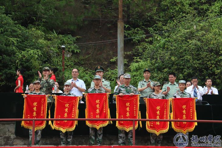 分列式结束后,学工部部长陈远武宣读了《梧州学院关于表彰2017级新生军训优秀集体和个人的决定》,授予“新生军训优秀集体”称号、“新生军训队列评比优胜集体”称号、“新生军训内务评比优胜集体”称号各6个,授予573名同学“新生军训优秀学员”称号。