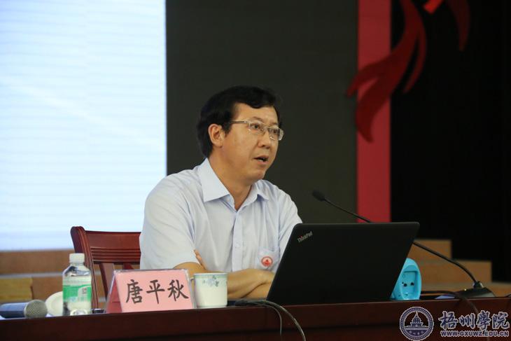 “从我们进入大学那一天起,我们就有了一个共同的角色和称呼——‘梧院人’。作为一名‘梧院人’,我们就有必要了解这所学校、热爱这所学校、融入这所学校,因为这所学校将伴随着大家度过四年最美好的青春年华,也将为你们将来的成功打下坚实的基础。”唐平秋书记说道。