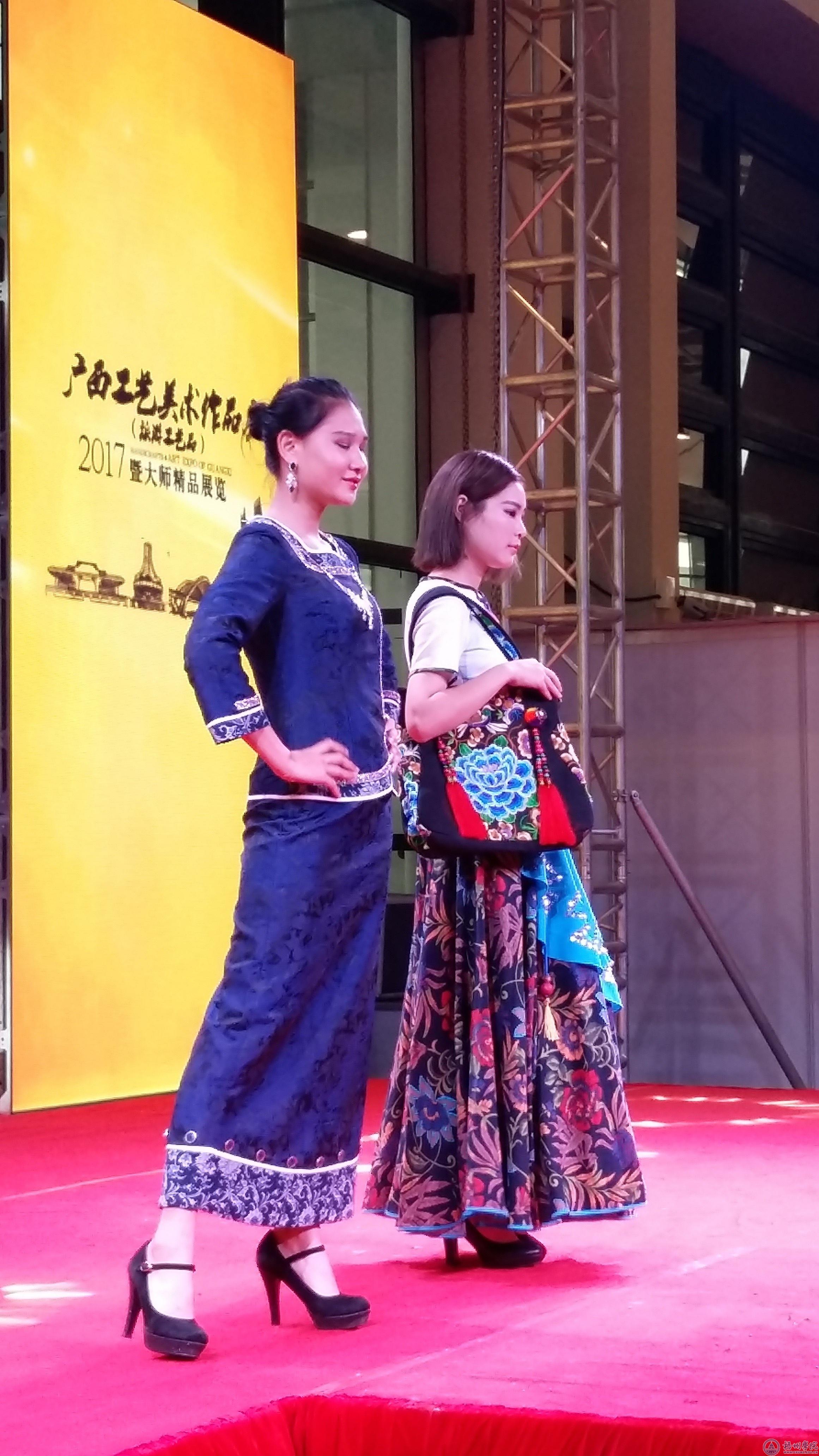 本届展览集中展现了广西一年来工艺美术创新成果,期间,评审产生广西工艺美术作品最高奖——“八桂天工奖”,并在此基础上评选出300件入围作品参加2017广西艺术作品展览。本届广西工艺美术作品最高奖——“八桂天工奖”,我校教师韦飞老师设计的作品《西江韵》获得了“银奖”,也是梧州市参加本届展览中唯一获得的1个“银奖”;韦华老师设计的作品《蓝》获得了“入围奖”。同时,韦飞老师设计的作品被评选入围继续参加2017广西艺术作品展览。