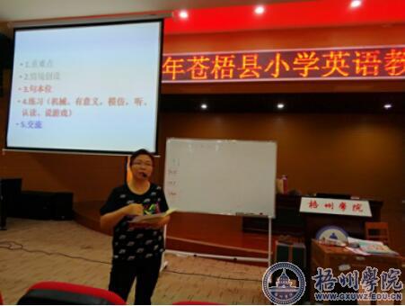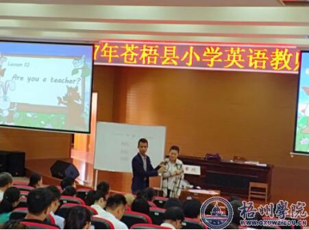 本次培训根据小学英语教学特点和学员实际情况,运用成果导向教学理念,由英语教学法资深教师梁进设计课程内容,主要包括理论指导下的小学英语听说教学等,兼顾辅助教学的自然拼读等。通过体验和小组合作,提升参培教师小学英语教学能力。此次培训,英语系的优秀教师团队担任相关课程的教学,聘请梧州市新兴二路小学两名优秀小学英语教师给学员们现场示范。