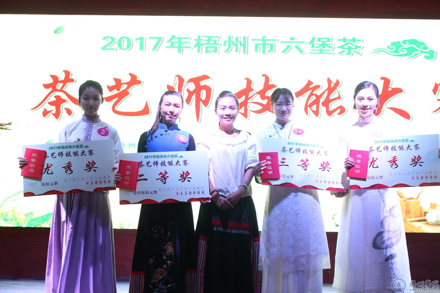 10月28日,2017年梧州市六堡茶茶艺师技能大赛在梧州六堡茶展示馆举行。我校艺术团茶艺队4名参赛队员均获得了优异的成绩,其中钟欣钰同学的作品《一叶知秋》荣获二等奖;王启蓉同学的作品《春生茶韵》荣获三等奖;杜瑞婷同学的作品《夏荷悠然》、傅蓉同学的作品《心头梅,鼻尖香》均荣获优秀奖。