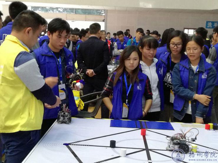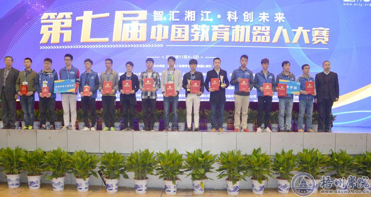 “智汇湘江 科创未来”2017第七届中国教育机器人大赛暨首届国际教育机器人邀请赛于11月4日--5日在长沙湖南商学院体育馆成功举行。来自全国100多所院校的1300多名选手参赛。经过两天的激烈角逐,我校由机化学院和信电学院学生组成的八个机器人代表队荣获四个一等奖、四个二等奖的好成绩。